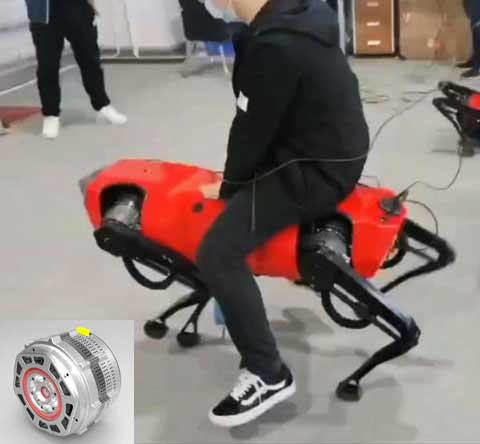 12自由度四足仿生機器人,整機12套關節(jié)電機,單關節(jié)電機功率1kW,峰值輸出扭矩200Nm,最高輸出速度180rpm,電機重量2kg.